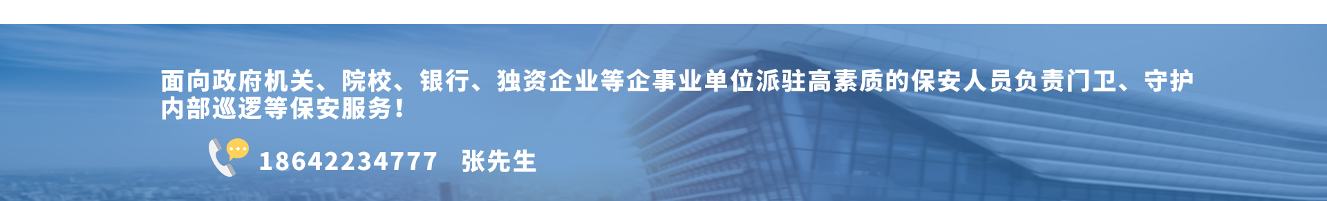 面向政府機關、院校、銀行、獨資企業等企事業單位派駐高素質的保安人員負責門衛、守護、內部巡邏等保安服務!